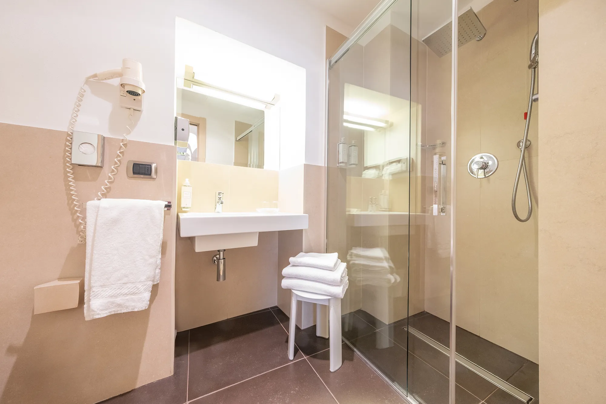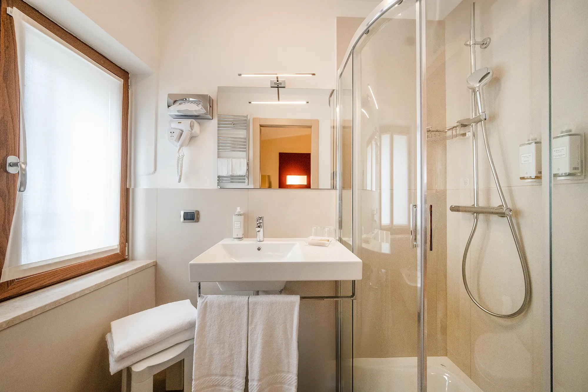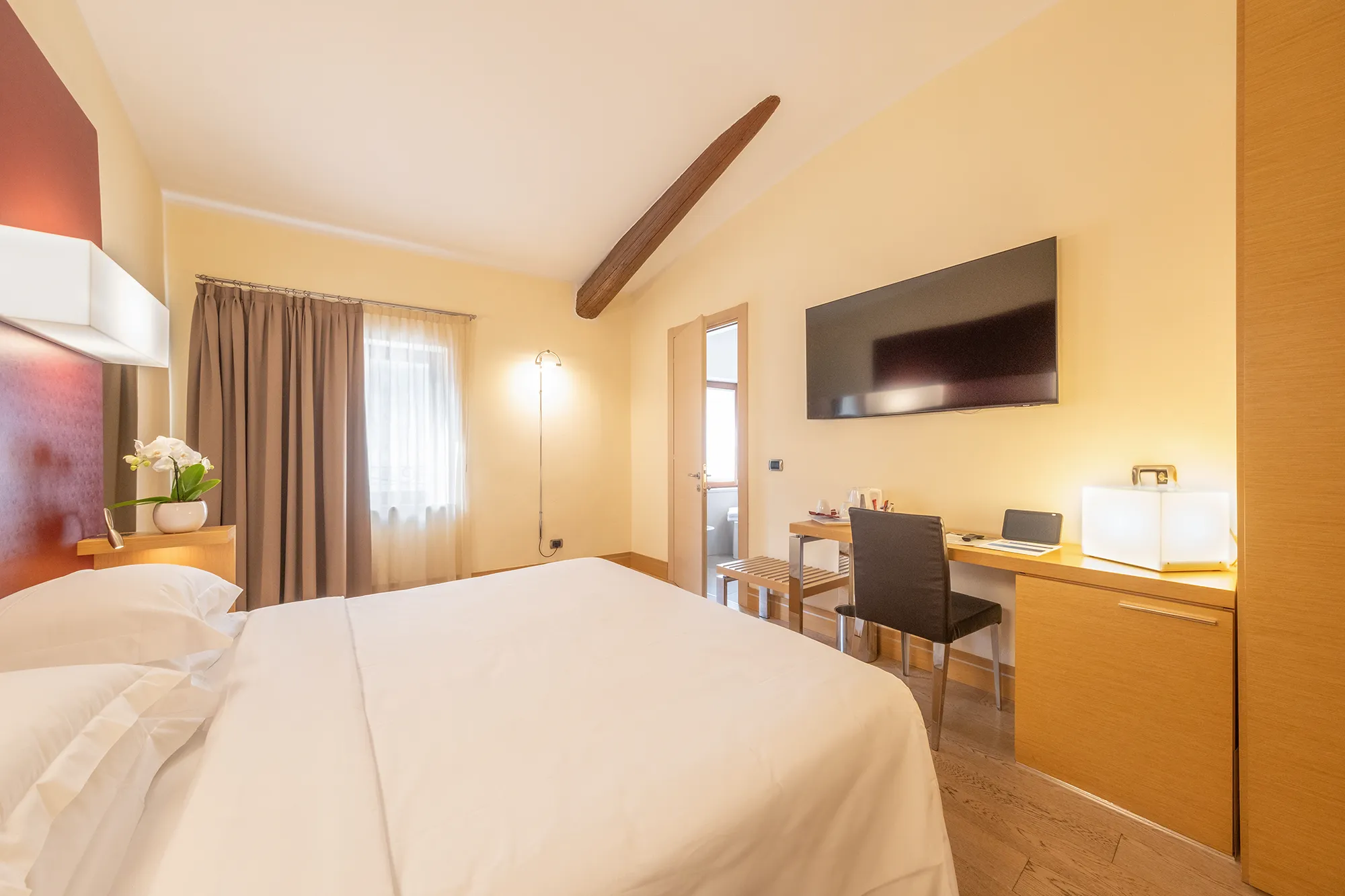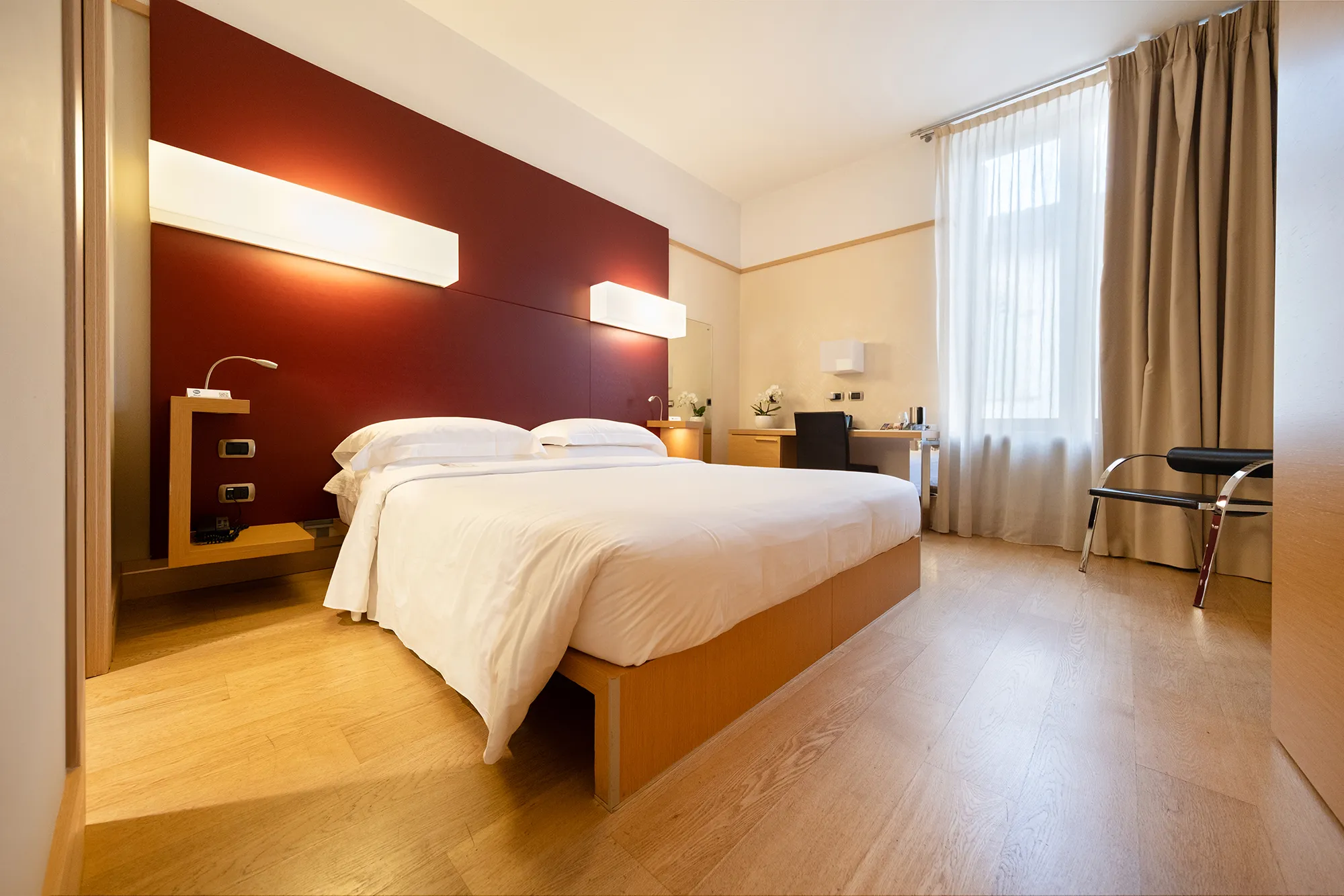 Ogni camera è dotata di climatizzazione autonoma e riscaldamento per permetterti di gestire liberamente la temperatura, oltre a una serie di comfort pensati per ogni tipo di viaggio, sia di piacere che di lavoro.