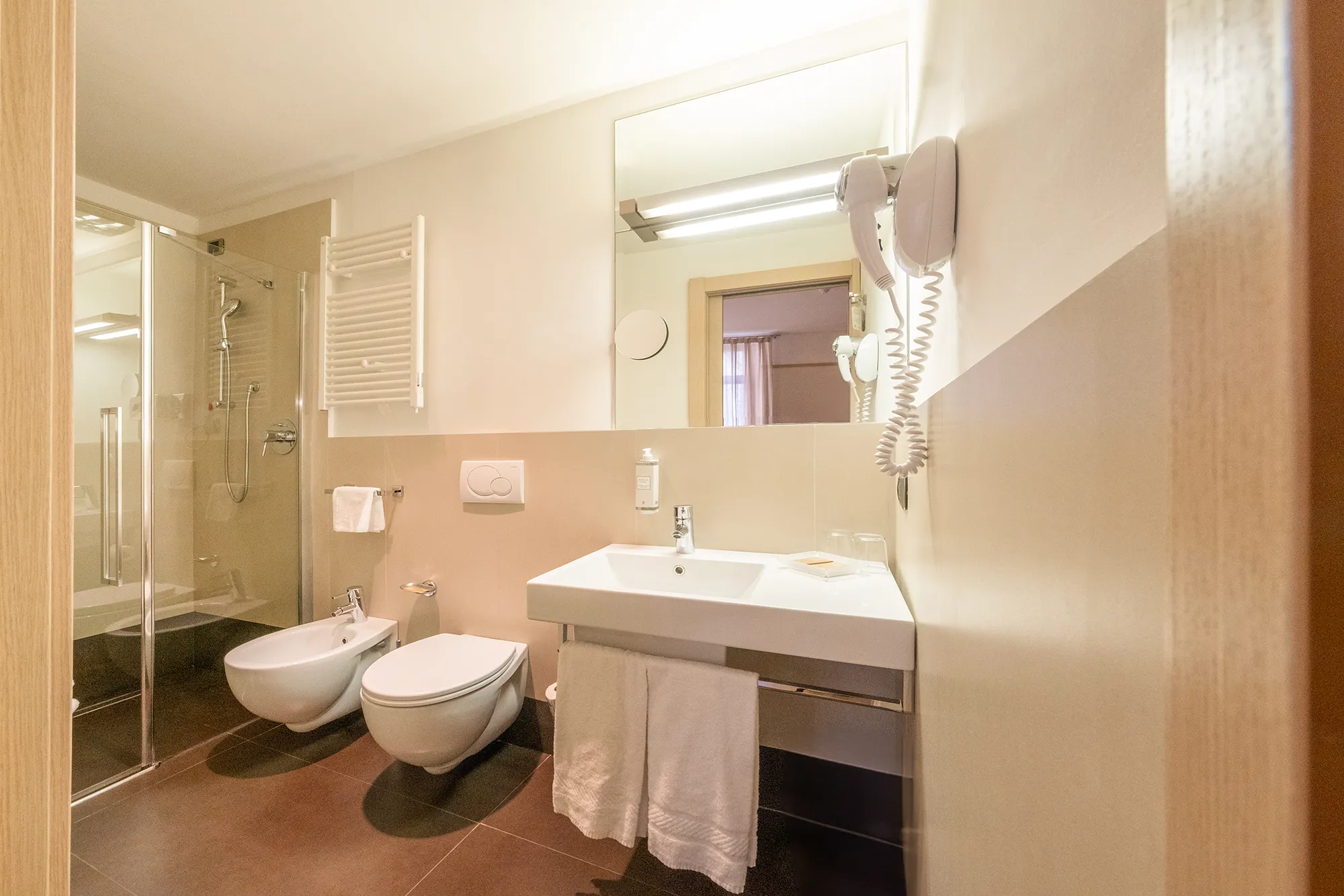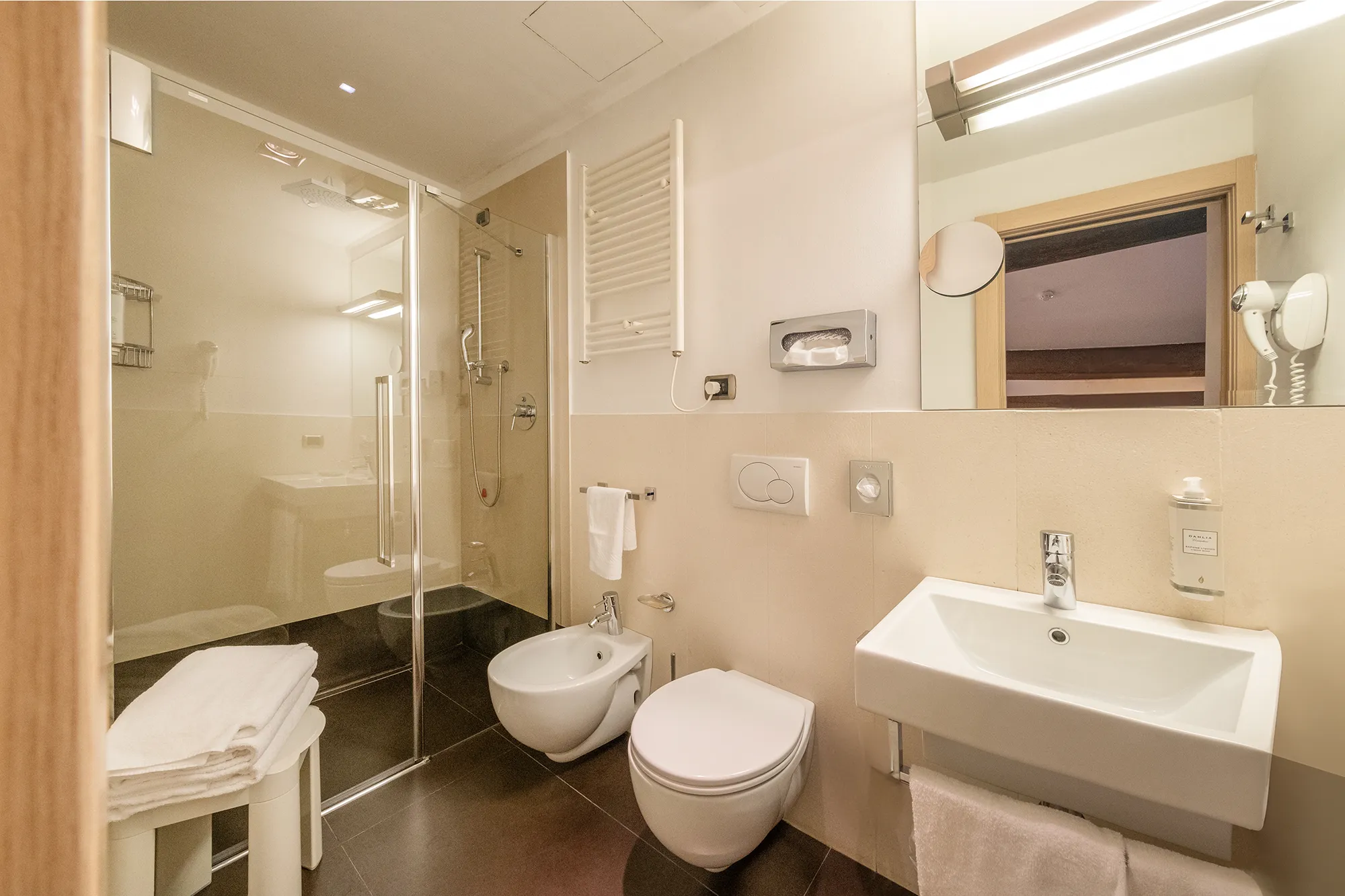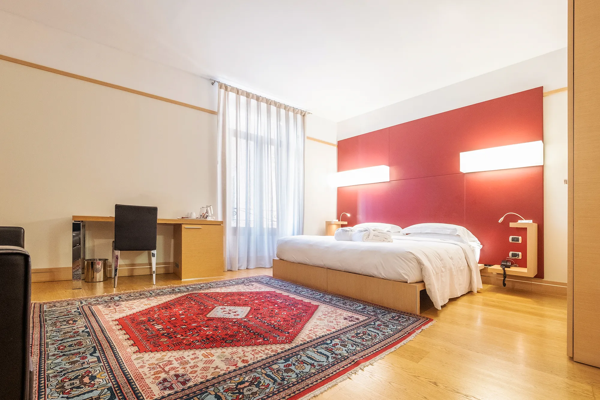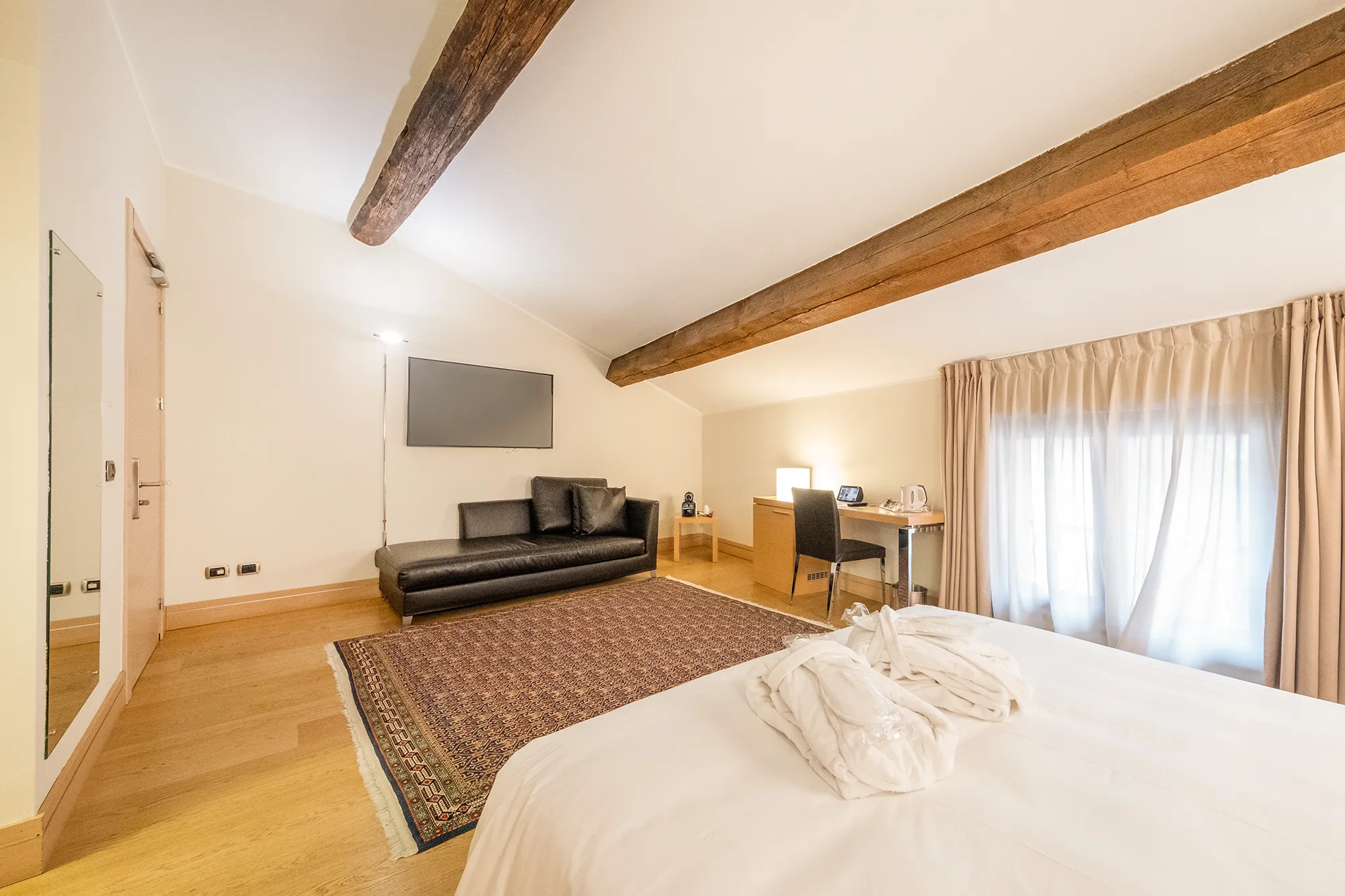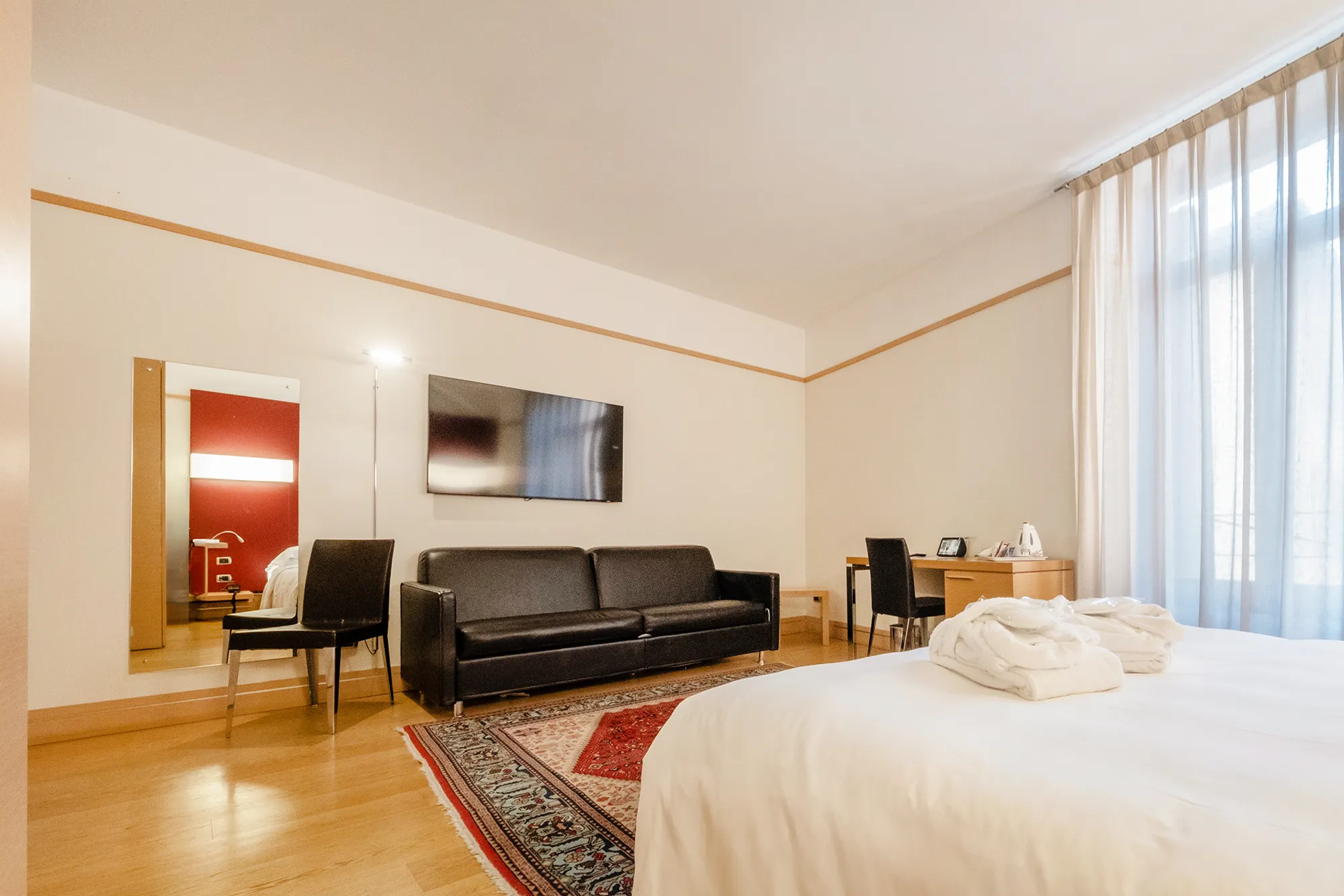Le camere Superior dell’Hotel Armando combinano spazio e funzionalità con un design elegante e curato, per offrire un soggiorno ancora più confortevole nel cuore di Verona. Sono caratterizzate da una superficie più ampia rispetto alle camere Standard e arricchite da dettagli aggiuntivi come cuscini di diversa tipologia e un divano in pelle, ideali per rilassarsi dopo una giornata di lavoro o trascorsa alla scoperta della città.