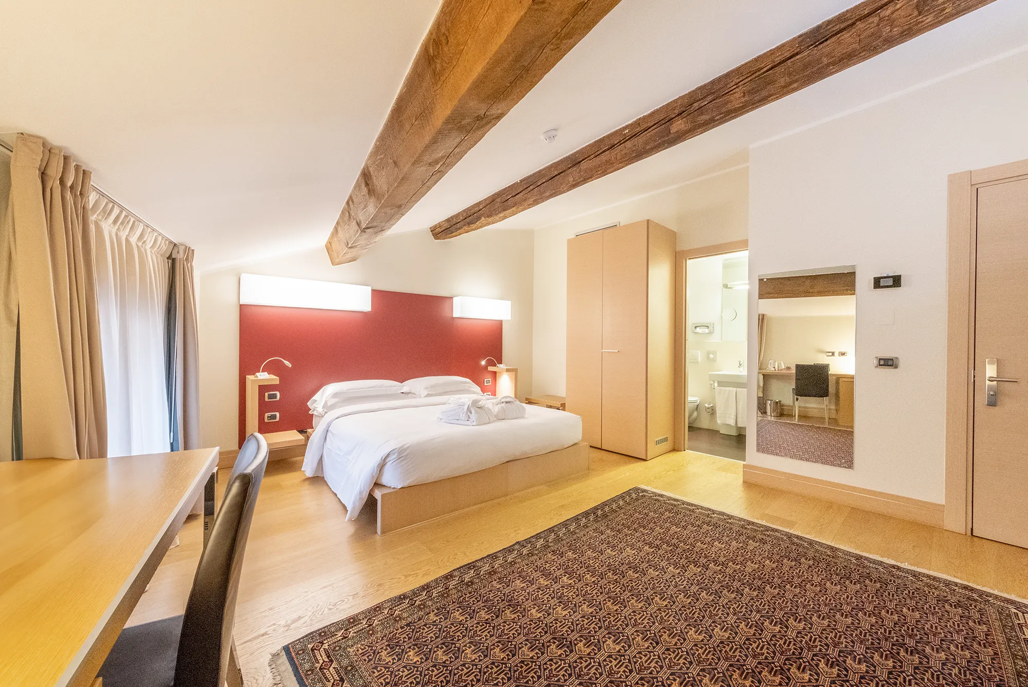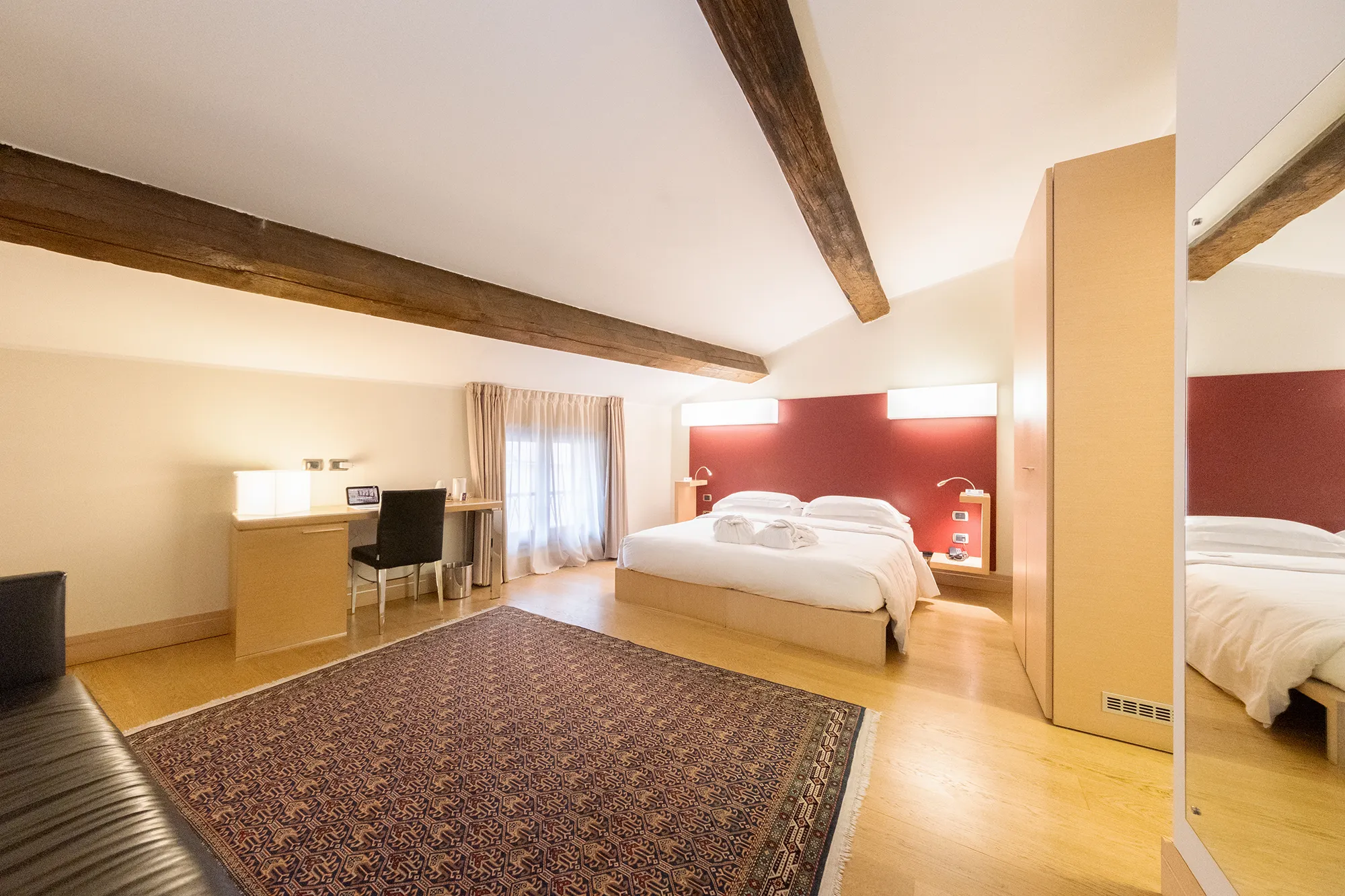 Su disponibilità è possibile soggiornare nelle camere Superior mansardate, che offrono un’atmosfera più raccolta all’ultimo piano dell’hotel.